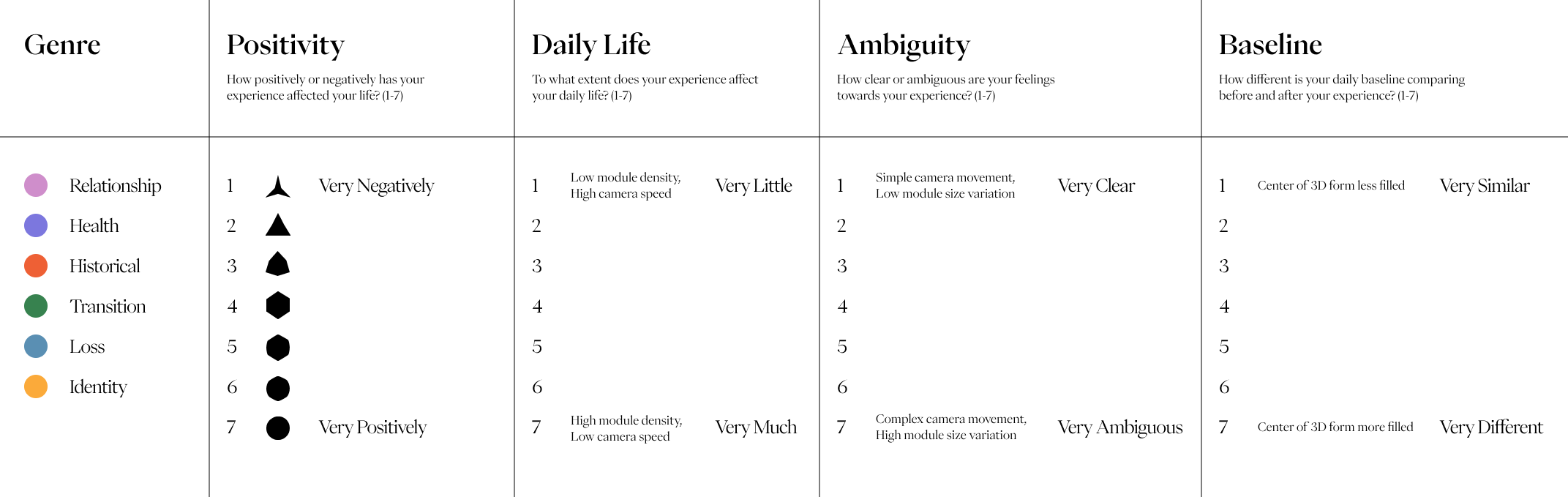 I personally quite enjoy these experiments as visual candy. Ultimately, these introduced too many variables for viewers to quickly understand.